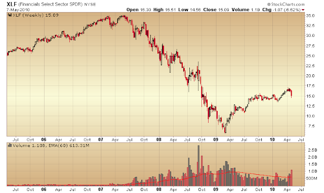 I’m even seeing analysts touting the energy sector as the place to be. It’s not unusual to see traders flock back into the leading sector of the prior bull, but if history is any indication energy will not lead this bull. You can see from the chart of XLE that energy, just like every other sector, is showing no signs of accumulation. Let’s face it the supply and demand fundamentals for the energy sector are now impaired and will be for years as the world cycles through multiple on again off a gain recessions and stubbornly high unemployment levels.