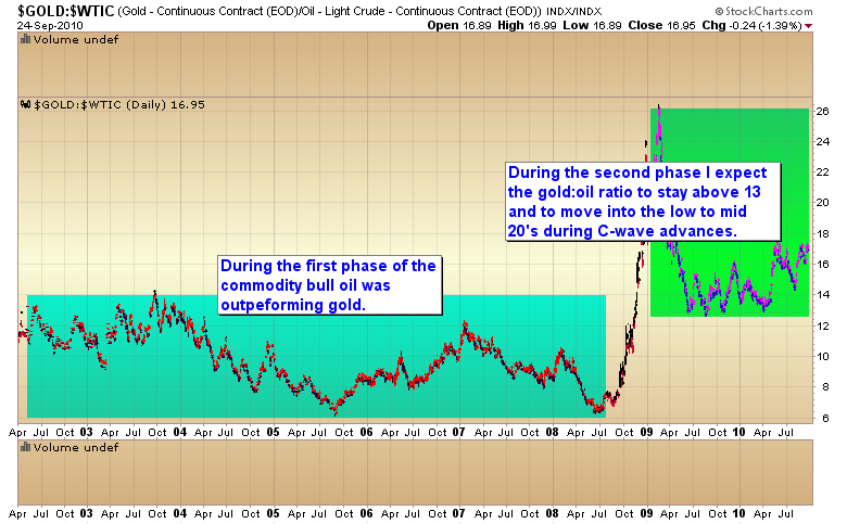 I’ve been of the opinion that the gold:oil ratio will now remain in a range above 13 for the rest of the commodity bull with occasional spikes above 20 as C-waves progress.