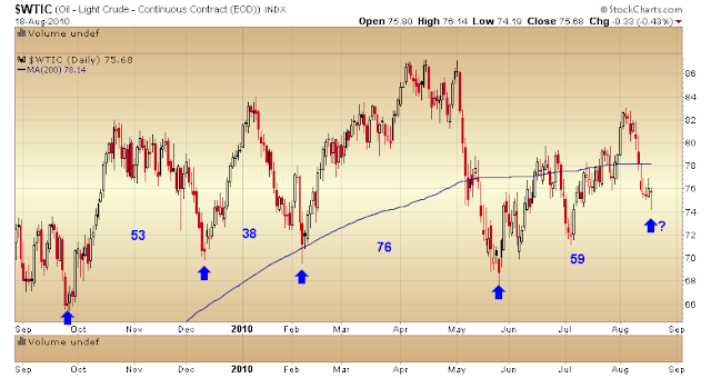 A while back (I can’t remember when, and I’m too lazy to find and link to it) I mentioned that the daily cycle in oil runs about 50-70 days.