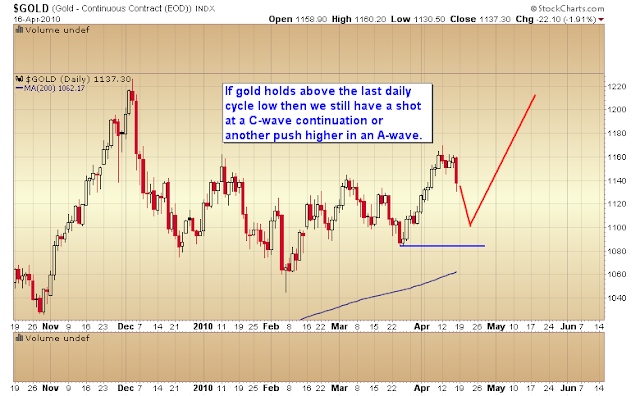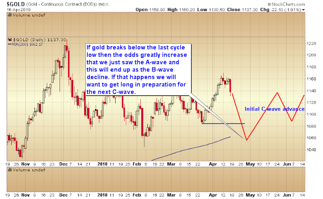 Whether gold drops below $1085 or not should tell us whether gold is still in an A-wave advance or if the A-wave is coming to an end and a B-wave decline is about to start.
