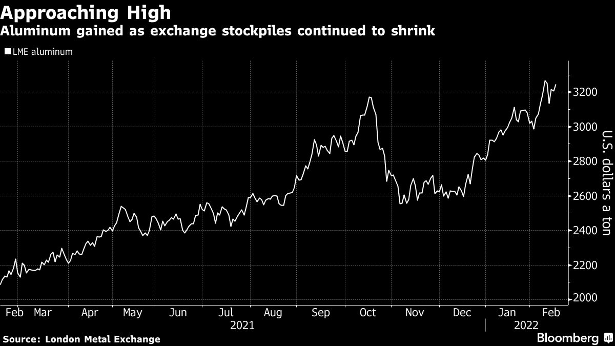 Aluminum gained as exchange stockpiles continued to shrink Bruno Venditti | February 16, 2022 | 8:00 am Share Comments Cancel replyYour email address will not be published. Required fields are marked * Save my name, email, and website in this browser for the next time I comment. Δ No comments found. More News Gold price hovers near $5,000 with US and China closed “The market remains in a phase of rebalancing between bulls and bears, lacking clear catalysts to break the range,” analyst says. February 16, 2026 | 09:43 am {{ commodity.name }} {{ post.title }} {{ post.excerpt }} {{ post.date }} First < {{ page }} > Last