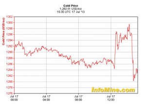 gold-price-17-July MINING.COM Staff Writer | July 17, 2013 | 3:37 pm Share Comments Cancel replyYour email address will not be published. Required fields are marked * Save my name, email, and website in this browser for the next time I comment. Δ No comments found. More News Iran says potential energy, mining deals on table in talks with US Iran has threatened to strike US bases in the Middle East if it is attacked by US forces but on Sunday took a conciliatory line. February 15, 2026 | 09:34 am {{ commodity.name }} {{ post.title }} {{ post.excerpt }} {{ post.date }} First < {{ page }} > Last
