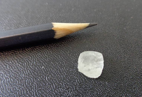 brazil minerals diamond 4.01 carats, diamond next to pencil, grey background