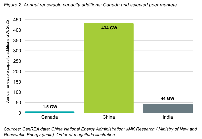parallel build-out of transmission and storage infrastructure, the report finds. In comparison, Canada added just 1.5 GW, a tiny fraction compared to China.