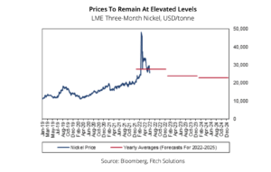 Fitch-nickel-price-chart-June-2022- Amanda Stutt | June 15, 2022 | 2:32 pm Share Comments Cancel replyYour email address will not be published. Required fields are marked * Save my name, email, and website in this browser for the next time I comment. Δ No comments found. More News Codelco achieves certification for silver bullion production Codelco's silver bars are the first in the South American country to be certified under the Good Delivery standard. January 14, 2026 | 07:02 am {{ commodity.name }} {{ post.title }} {{ post.excerpt }} {{ post.date }} First < {{ page }} > Last