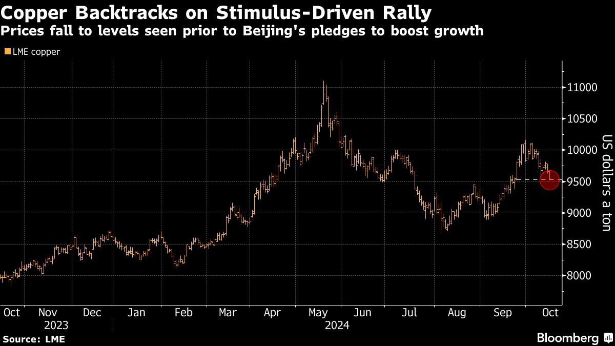 Copper Backtracks on Stimulus-Driven Rally | Prices fall to levels seen prior to Beijing’s pledges to boost growth Bruno Venditti | October 15, 2024 | 10:19 am Share Comments Cancel replyYour email address will not be published. Required fields are marked * Save my name, email, and website in this browser for the next time I comment. Δ No comments found. More News Mexico and Canada plan joint action on minerals The countries will present an joint action plan on minerals, infrastructure and supply chains in the second half of the year. February 16, 2026 | 09:46 am {{ commodity.name }} {{ post.title }} {{ post.excerpt }} {{ post.date }} First < {{ page }} > Last