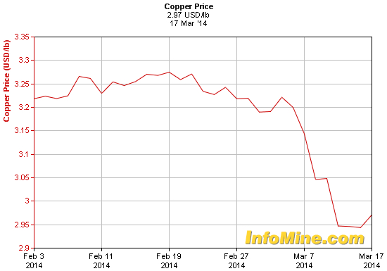 Dr. Copper can’t find a cure for ongoing Chinese flu Cecilia Jamasmie | March 19, 2014 | 1:49 pm Share Comments Cancel replyYour email address will not be published. Required fields are marked * Save my name, email, and website in this browser for the next time I comment. Δ No comments found. More News Trump trade team working to narrow scope of metals tariffs Trump last year imposed a 50% levy on foreign steel and aluminum in a measure aimed at Chinese overcapacity. February 13, 2026 | 12:14 pm {{ commodity.name }} {{ post.title }} {{ post.excerpt }} {{ post.date }} First < {{ page }} > Last