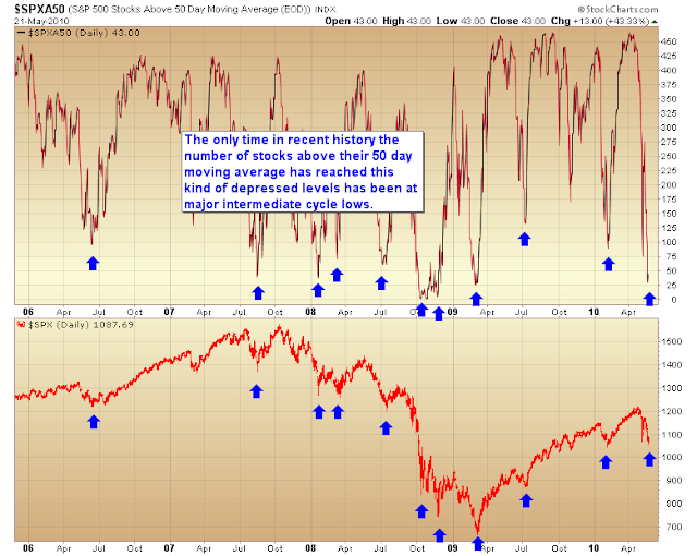 Sentiment and breadth have reached such extreme levels that even if the market has resumed the secular bear trend we are probably due for a strong counter trend move.