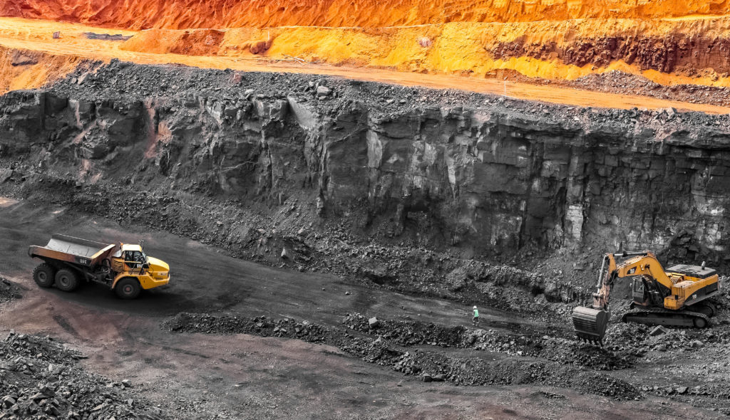 The excavators working on a manganese mining site in South Africa. Stock image.