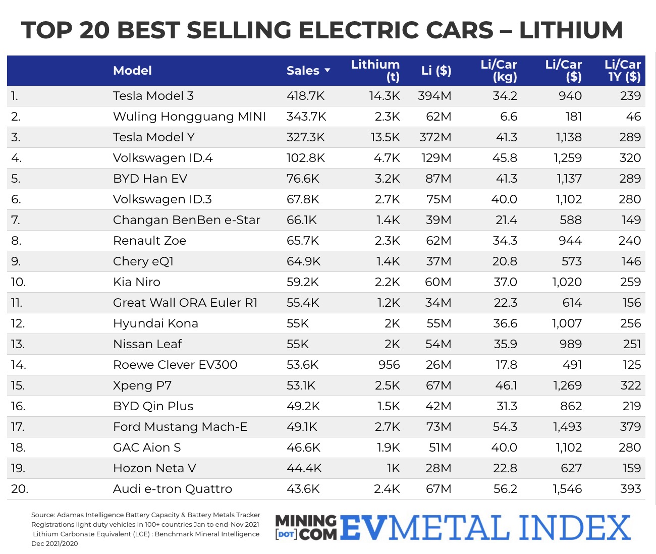 Top-20-best-selling-electric-cars-of-2021-lithium-price Frik Els | January 13, 2022 | 3:28 pm Share Comments Cancel replyYour email address will not be published. Required fields are marked * Save my name, email, and website in this browser for the next time I comment. Δ No comments found. More News Legal analysis: What Project Vault means for critical minerals regulation White House confirmed the start of the project, which would combine $1.67B in private capital with a $10B loan from the US Export-Import Bank to buy and store minerals. February 16, 2026 | 11:16 am {{ commodity.name }} {{ post.title }} {{ post.excerpt }} {{ post.date }} First < {{ page }} > Last