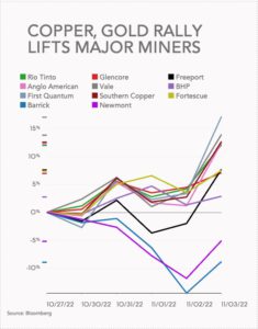 stocks-rally-friday-copper-gold-price-surge Frik Els | November 4, 2022 | 10:44 am Share Comments Cancel replyYour email address will not be published. Required fields are marked * Save my name, email, and website in this browser for the next time I comment. Δ No comments found. More News Trafigura’s Nyrstar ships first antimony batch from Australia plant The Port Pirie facility has the potential to produce up to 5,000 tons of antimony per year. February 16, 2026 | 07:16 am {{ commodity.name }} {{ post.title }} {{ post.excerpt }} {{ post.date }} First < {{ page }} > Last