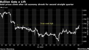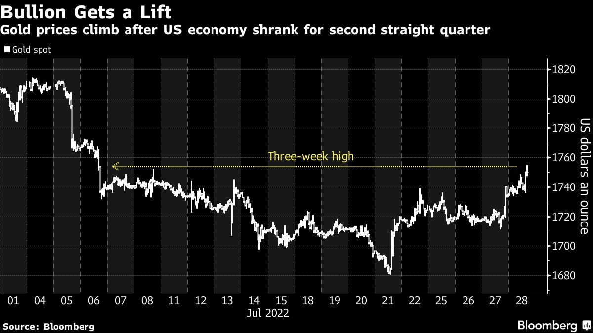 Gold prices climb after US economy shrank for second straight quarter Jackson Chen | July 28, 2022 | 10:55 am Share Comments Cancel replyYour email address will not be published. Required fields are marked * Save my name, email, and website in this browser for the next time I comment. Δ No comments found. More News BHP’s Vicuna unveils $18 billion copper investment in Argentina The project is forecast to average 395,000 tons of copper, 711,000 ounces of gold, and 22.2 million ounces of silver annually over its first 25 years. February 16, 2026 | 01:26 pm {{ commodity.name }} {{ post.title }} {{ post.excerpt }} {{ post.date }} First < {{ page }} > Last
