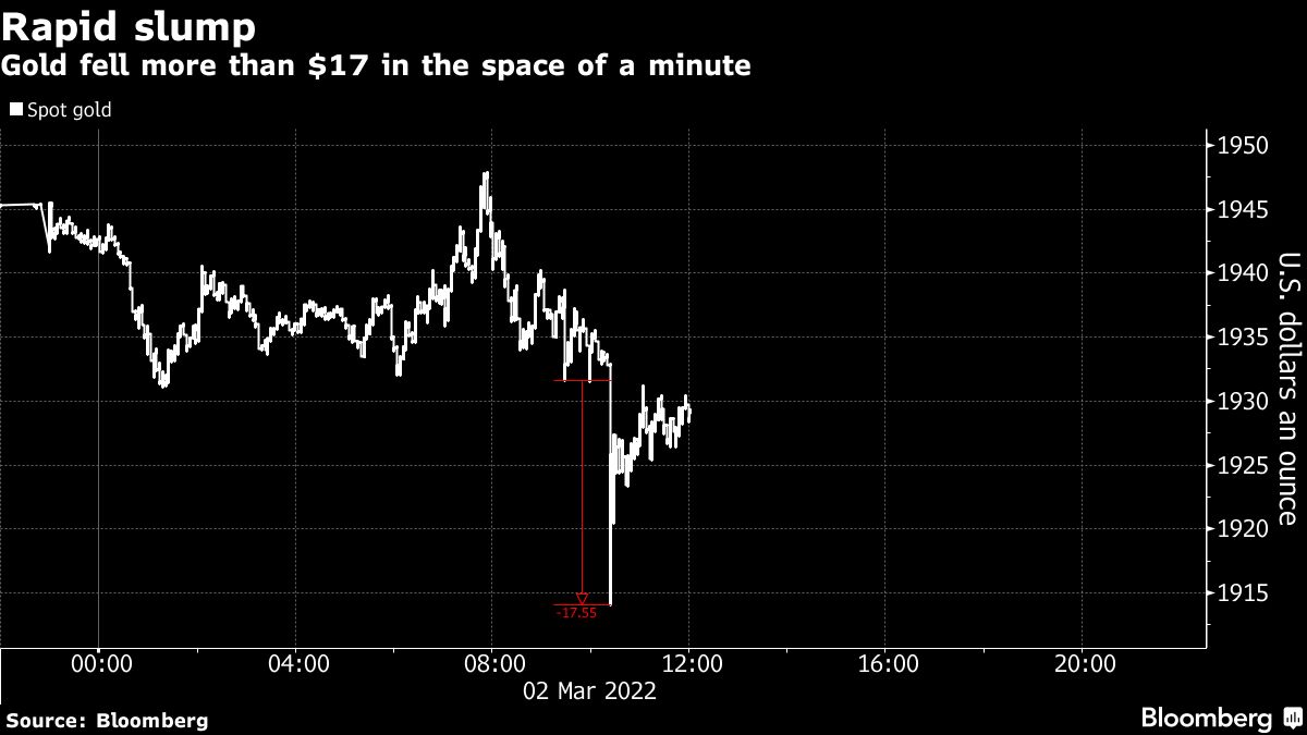 Gold fell more than $17 in the space of a minute Jackson Chen | March 2, 2022 | 9:26 am Share Comments Cancel replyYour email address will not be published. Required fields are marked * Save my name, email, and website in this browser for the next time I comment. Δ No comments found. More News Copper price: Global exchange stocks top 1 million tonnes first time in 21 years Copper stocks on the world's biggest metal exchanges have exceeded 1 million tons for the first time since 2004. February 16, 2026 | 12:35 pm {{ commodity.name }} {{ post.title }} {{ post.excerpt }} {{ post.date }} First < {{ page }} > Last