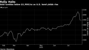 Gold tumbles below $1,900/oz as U.S. bond yields rise Jackson Chen | August 12, 2020 | 9:04 am Share Comments Cancel replyYour email address will not be published. Required fields are marked * Save my name, email, and website in this browser for the next time I comment. Δ No comments found. More News Trafigura’s Nyrstar ships first antimony batch from Australia plant The Port Pirie facility has the potential to produce up to 5,000 tons of antimony per year. February 16, 2026 | 07:16 am {{ commodity.name }} {{ post.title }} {{ post.excerpt }} {{ post.date }} First < {{ page }} > Last