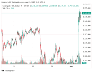 XAUUSD_2025-08-01_09-04-01 Jackson Chen | August 1, 2025 | 9:03 am Share Comments Cancel replyYour email address will not be published. Required fields are marked * Save my name, email, and website in this browser for the next time I comment. Δ No comments found. More News Silver Crown Royalties soars to new high on Gentile investment Michael Gentile, as co-founder of Montreal-based hedge fund Bastion Asset Management, is the largest shareholder in over 25 junior miners. January 13, 2026 | 10:54 am {{ commodity.name }} {{ post.title }} {{ post.excerpt }} {{ post.date }} First < {{ page }} > Last