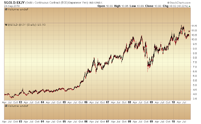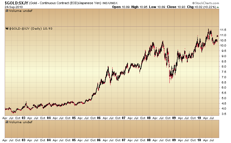 As you can see gold is rising in all currencies even in the strongest of all currencies, the Yen.