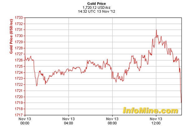 gold tumbles to $1720 an ounce MINING.COM Staff Writer | November 13, 2012 | 2:41 pm Share Comments Cancel replyYour email address will not be published. Required fields are marked * Save my name, email, and website in this browser for the next time I comment. Δ No comments found. More News Contract worker dies at Rio Tinto’s Simandou mine in Guinea Last August, a contract worker died in an incident at the same mine. February 16, 2026 | 06:20 am {{ commodity.name }} {{ post.title }} {{ post.excerpt }} {{ post.date }} First < {{ page }} > Last