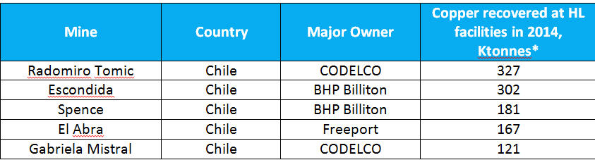 Top five Heap Leach producers of copper chart