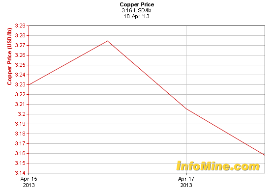 Here we go again: copper headed to bear market land Cecilia Jamasmie | April 19, 2013 | 5:51 pm Share Comments Cancel replyYour email address will not be published. Required fields are marked * Save my name, email, and website in this browser for the next time I comment. Δ No comments found. More News BHP’s Vicuna unveils $18 billion copper investment in Argentina The project is forecast to average 395,000 tons of copper, 711,000 ounces of gold, and 22.2 million ounces of silver annually over its first 25 years. February 16, 2026 | 01:26 pm {{ commodity.name }} {{ post.title }} {{ post.excerpt }} {{ post.date }} First < {{ page }} > Last