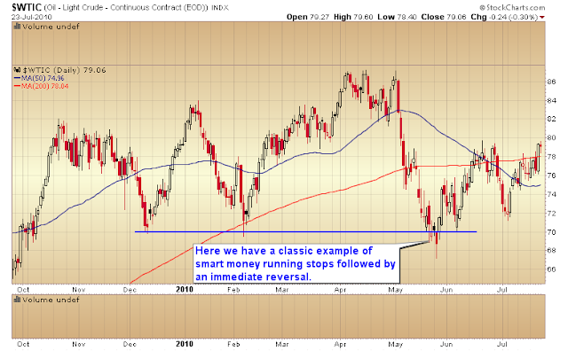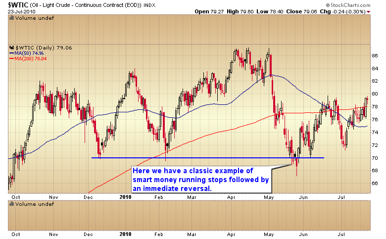 If big money is selling it is because they are trying to push the market below a significant technical level so all the technicians will puke up their shares. By running an important technical level big funds can trigger a ton of sell stops to activate, allowing them to accumulate a large position without moving the market against themselfs in the process. We saw this very thing happen in the oil market recently and also in February as gold bottomed.
