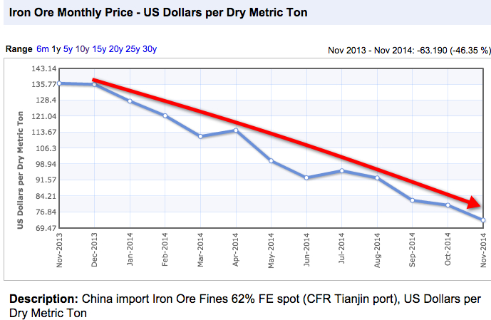 Iron ore and oil down to financial crisis levels Cecilia Jamasmie | December 30, 2014 | 5:30 pm Share Comments Cancel replyYour email address will not be published. Required fields are marked * Save my name, email, and website in this browser for the next time I comment. Δ No comments found. More News Acid, not copper, is paying China’s smelters but will it last? Tight global sulphur supply from disruptions has constrained availability of a feedstock used to make sulphuric acid, analysts say. February 15, 2026 | 09:48 am {{ commodity.name }} {{ post.title }} {{ post.excerpt }} {{ post.date }} First < {{ page }} > Last