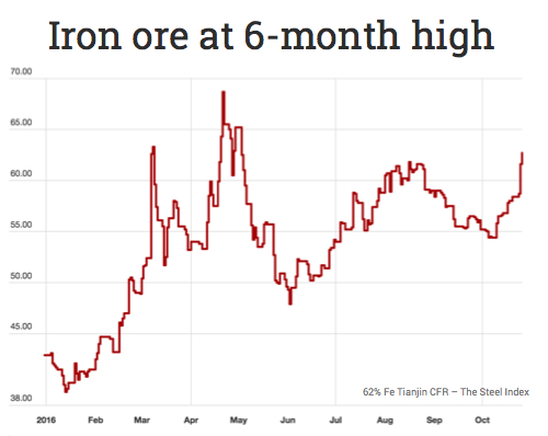 Iron ore jumps to 6-month high Frik Els | October 26, 2016 | 4:37 am Share Comments No comments found. More News Iran says potential energy, mining deals on table in talks with US Iran has threatened to strike US bases in the Middle East if it is attacked by US forces but on Sunday took a conciliatory line. February 15, 2026 | 09:34 am {{ commodity.name }} {{ post.title }} {{ post.excerpt }} {{ post.date }} First < {{ page }} > Last