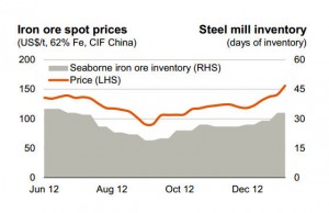 iron-ore-price-steel-inventory-china-bhp-billiton Frik Els | February 20, 2013 | 5:49 pm Share Comments Cancel replyYour email address will not be published. Required fields are marked * Save my name, email, and website in this browser for the next time I comment. Δ No comments found. More News Rio Tinto and BHP to lead Australia earnings rebound Both miners enter 2026 set for earnings outperformance, buoyed by commodity prices that help valuations catch up with broader equity markets. February 16, 2026 | 08:49 am {{ commodity.name }} {{ post.title }} {{ post.excerpt }} {{ post.date }} First < {{ page }} > Last