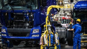 Workers in machinery factory in China.