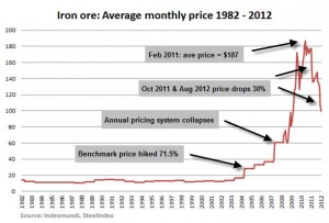 graph_iron_ore_1982_2012_sep_600 Frik Els | October 11, 2012 | 11:29 pm Share Comments Cancel replyYour email address will not be published. Required fields are marked * Save my name, email, and website in this browser for the next time I comment. Δ No comments found. More News Iran says potential energy, mining deals on table in talks with US Iran has threatened to strike US bases in the Middle East if it is attacked by US forces but on Sunday took a conciliatory line. February 15, 2026 | 09:34 am {{ commodity.name }} {{ post.title }} {{ post.excerpt }} {{ post.date }} First < {{ page }} > Last