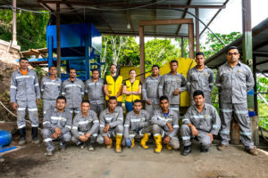 Bulk sampling, plant and underground team at Baroyeca’s Santa Barbara project in Colombia, with president Raul Sanabria and general manager Martha Delgado in yellow vests. Credit: Baroyeca Gold & Silver