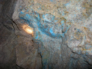 Main zone underground at El Creston showing copper mineralisation. Credit Starcore International Mines