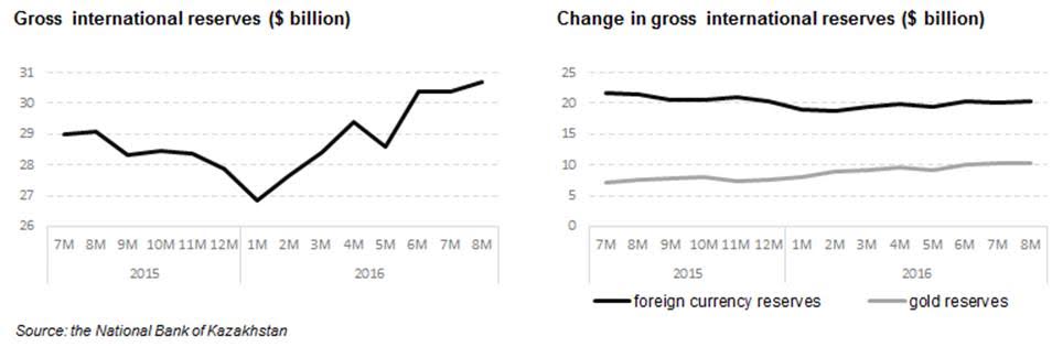 Kazakhstan’s gold and foreign currency reserves reach $30.71bn in August 2016