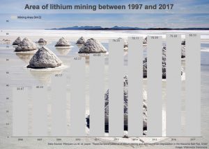Source: Wenjuan Liu et. al; paper: “Spatiotemporal patterns of lithium mining and environmental degradation in the Atacama Salt Flat, Chile.”