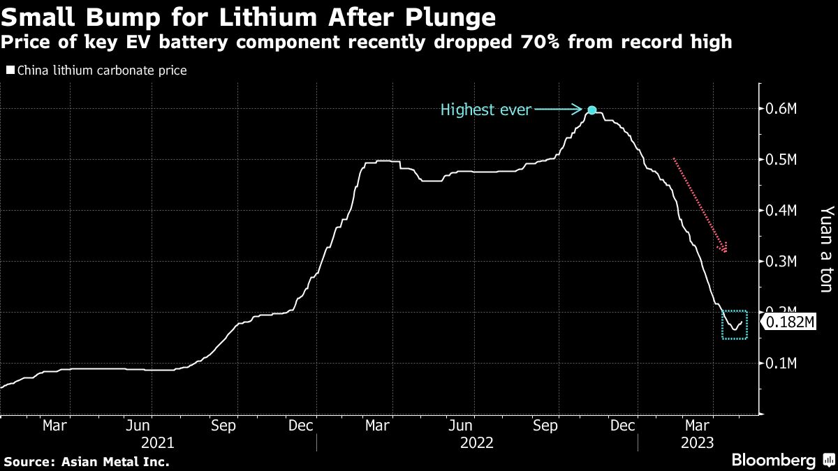 Small Bump for Lithium After Plunge | Price of key EV battery component recently dropped 70% from record high Bruno Venditti | May 8, 2023 | 8:46 am Share Comments Cancel replyYour email address will not be published. Required fields are marked * Save my name, email, and website in this browser for the next time I comment. Δ No comments found. More News Copper price: Global exchange stocks top 1 million tonnes first time in 21 years Copper stocks on the world's biggest metal exchanges have exceeded 1 million tons for the first time since 2004. February 16, 2026 | 12:35 pm {{ commodity.name }} {{ post.title }} {{ post.excerpt }} {{ post.date }} First < {{ page }} > Last