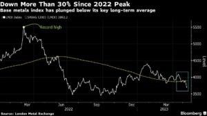 Down More Than 30% Since 2022 Peak | Base metals index has plunged below its key long-term average Bruno Venditti | May 15, 2023 | 9:19 am Share Comments Cancel replyYour email address will not be published. Required fields are marked * Save my name, email, and website in this browser for the next time I comment. Δ No comments found. More News Niger stockpiled 1,000t of yellowcake at military base: FT According to FT, Nigerien officials already held discussions with interested buyers from Russia, China, the US and the UAE, but have yet to find a deal. February 16, 2026 | 08:43 am {{ commodity.name }} {{ post.title }} {{ post.excerpt }} {{ post.date }} First < {{ page }} > Last