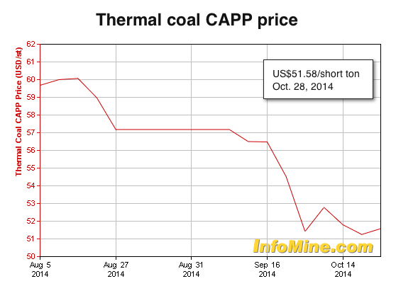 coal-prices-chart Cecilia Jamasmie | November 4, 2014 | 3:29 pm Share Comments Cancel replyYour email address will not be published. Required fields are marked * Save my name, email, and website in this browser for the next time I comment. Δ No comments found. More News Iran says potential energy, mining deals on table in talks with US Iran has threatened to strike US bases in the Middle East if it is attacked by US forces but on Sunday took a conciliatory line. February 15, 2026 | 09:34 am {{ commodity.name }} {{ post.title }} {{ post.excerpt }} {{ post.date }} First < {{ page }} > Last