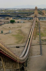 09 power lines:: Utility regulators say the state’s power transmission system is inadequate to keep up with demand and the planned upgrades are insufficient,Tuesday August 7th 2001 in Tucson,AZ. This Coal Conveyor at Tucson Electric Power’s plant on the South side of Tucson brings coal to the coal storage building. 8/7/01 Photo by James S. Wood Assn#92295