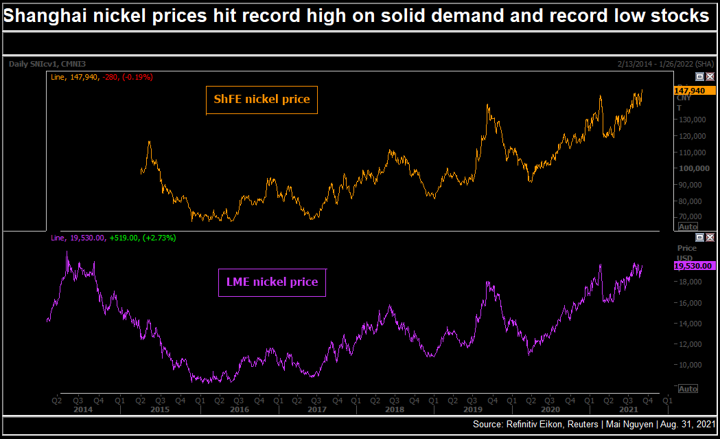nickel-prices Jackson Chen | August 31, 2021 | 10:24 am Nickel prices record Share Comments Cancel replyYour email address will not be published. Required fields are marked * Save my name, email, and website in this browser for the next time I comment. Δ No comments found. More News Trafigura’s Nyrstar ships first antimony batch from Australia plant The Port Pirie facility has the potential to produce up to 5,000 tons of antimony per year. February 16, 2026 | 07:16 am {{ commodity.name }} {{ post.title }} {{ post.excerpt }} {{ post.date }} First < {{ page }} > Last