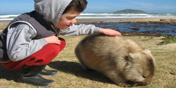 boy and wombat Australia