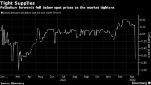 Palladium forwards fell below spot prices as the market tightens Bruno Venditti | January 27, 2022 | 8:45 am Share Comments Cancel replyYour email address will not be published. Required fields are marked * Save my name, email, and website in this browser for the next time I comment. Δ No comments found. More News BHP’s Vicuna unveils $18 billion copper investment in Argentina The project is forecast to average 395,000 tons of copper, 711,000 ounces of gold, and 22.2 million ounces of silver annually over its first 25 years. February 16, 2026 | 01:26 pm {{ commodity.name }} {{ post.title }} {{ post.excerpt }} {{ post.date }} First < {{ page }} > Last