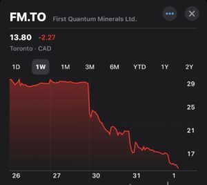 first-quantum-shares Cecilia Jamasmie | November 1, 2023 | 7:56 am Share Comments Cancel replyYour email address will not be published. Required fields are marked * Save my name, email, and website in this browser for the next time I comment. Δ No comments found. More News Lithuania may sign minerals deal with US if EU moves too slowly For months, the US and its trading partners have worked toward a cooperation to wean their supply chains off China. February 13, 2026 | 04:24 pm {{ commodity.name }} {{ post.title }} {{ post.excerpt }} {{ post.date }} First < {{ page }} > Last