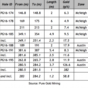 Pure Gold released additional drill results from its 51,000 metre drill program at the Company’s 100%-owned Madsen Gold Project in Ontario. 27 Sept. 2016.