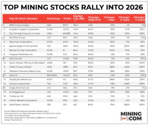 TOP 20 MINING STOCKS RALLY 2026 Frik Els | January 13, 2026 | 6:09 pm Share Comments Cancel replyYour email address will not be published. Required fields are marked * Save my name, email, and website in this browser for the next time I comment. Δ No comments found. More News Trafigura’s Nyrstar ships first antimony batch from Australia plant The Port Pirie facility has the potential to produce up to 5,000 tons of antimony per year. February 16, 2026 | 07:16 am {{ commodity.name }} {{ post.title }} {{ post.excerpt }} {{ post.date }} First < {{ page }} > Last