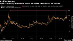 Russian currency tumbles to lowest on record after attacks on Ukraine