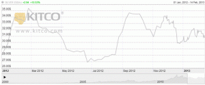 silver prices 2012 MINING.COM Staff Writer | February 14, 2013 | 6:48 am Share Comments Cancel replyYour email address will not be published. Required fields are marked * Save my name, email, and website in this browser for the next time I comment. Δ No comments found. More News Lithuania may sign minerals deal with US if EU moves too slowly For months, the US and its trading partners have worked toward a cooperation to wean their supply chains off China. February 13, 2026 | 04:24 pm {{ commodity.name }} {{ post.title }} {{ post.excerpt }} {{ post.date }} First < {{ page }} > Last