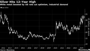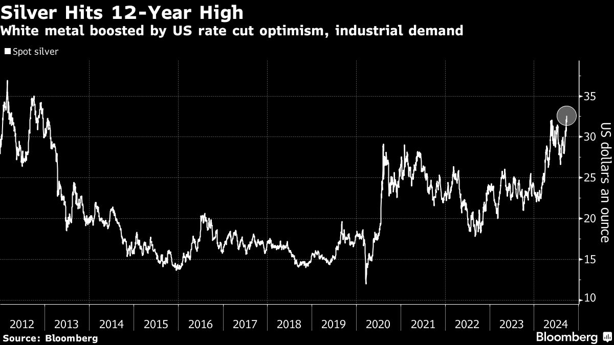 Silver Hits 12-Year High | White metal boosted by US rate cut optimism, industrial demand Bruno Venditti | September 26, 2024 | 9:18 am Share Comments Cancel replyYour email address will not be published. Required fields are marked * Save my name, email, and website in this browser for the next time I comment. Δ No comments found. More News Copper price: Global exchange stocks top 1 million tonnes first time in 21 years Copper stocks on the world's biggest metal exchanges have exceeded 1 million tons for the first time since 2004. February 16, 2026 | 12:35 pm {{ commodity.name }} {{ post.title }} {{ post.excerpt }} {{ post.date }} First < {{ page }} > Last