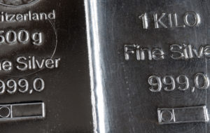 The surface of two cast silver bars weighing 1 kilogram and 500 grams.