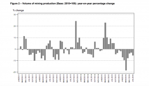 South Africa’s mining production decreased by 5.4% year on year in July 2016