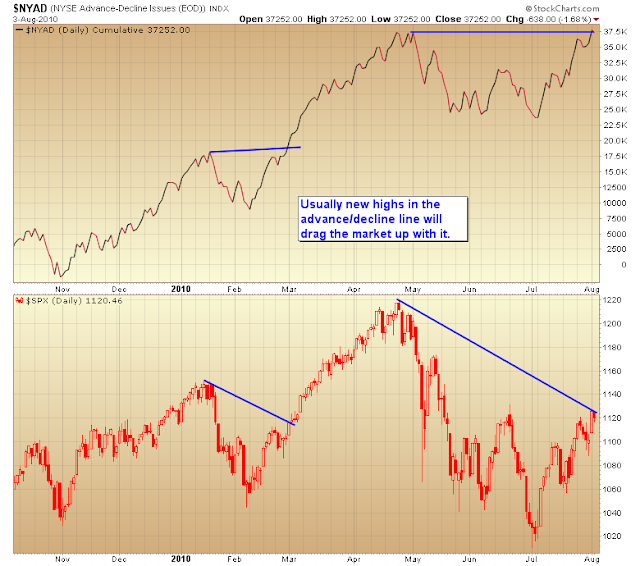 The fact that the advance/decline line has already made new highs is a big plus for the bulls.