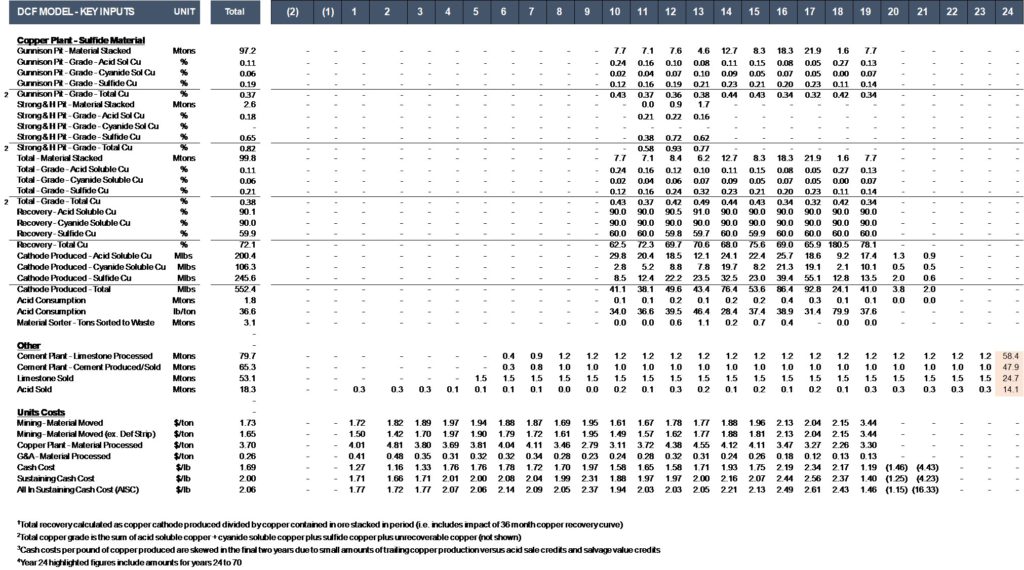 - Sustaining Capital are expenditures to maintain initial facilities. Includes $186 million in deferred stripping costs. Includes sustaining capital for both the copper plant and the cement plant
